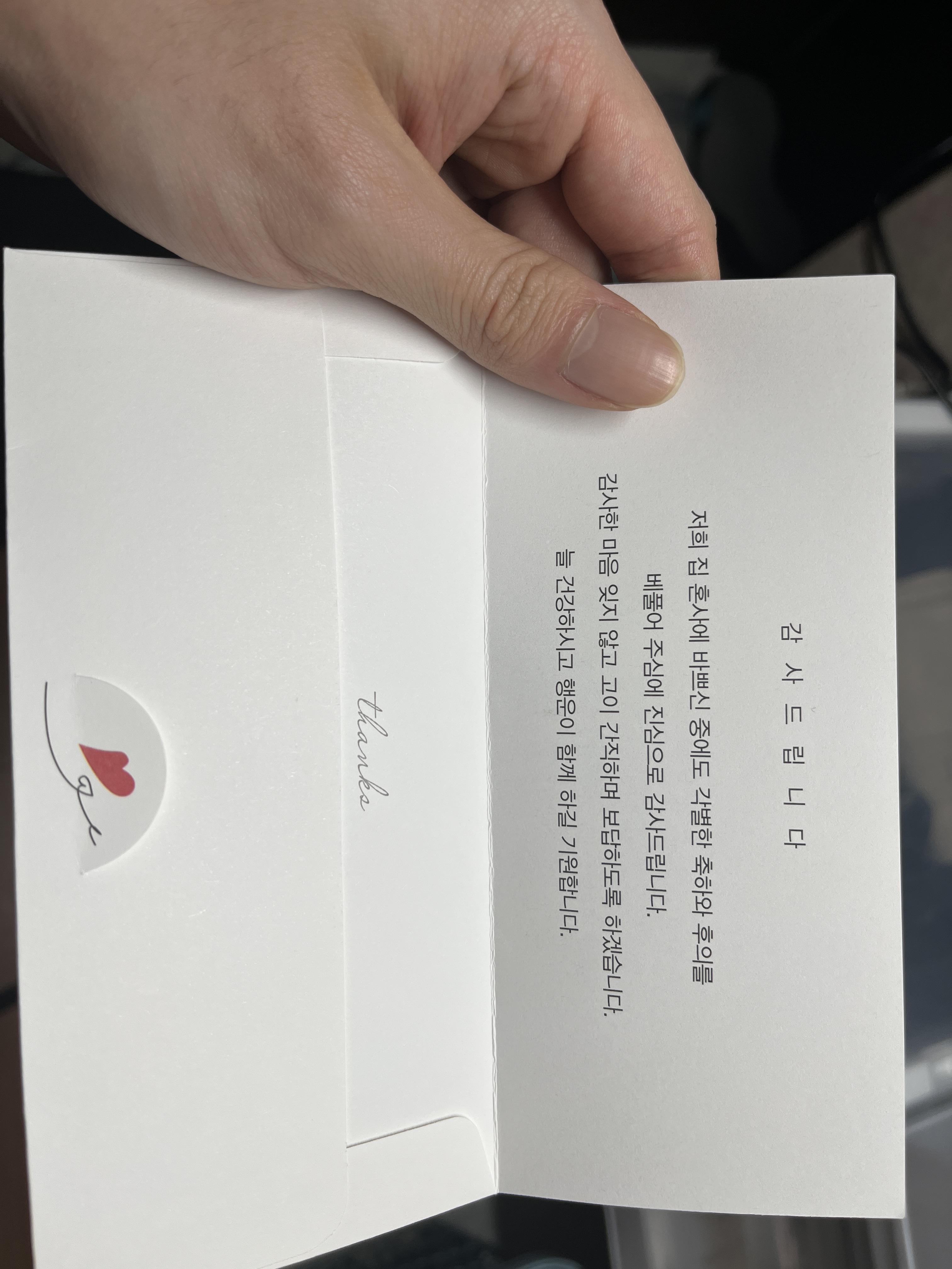 집에 돌아와 추억과 향수에 젖어서 친구가 답례품과 함께 준 편지지에 적혀있는 글귀를 읽었다. 와인 한잔이 땡기더군.