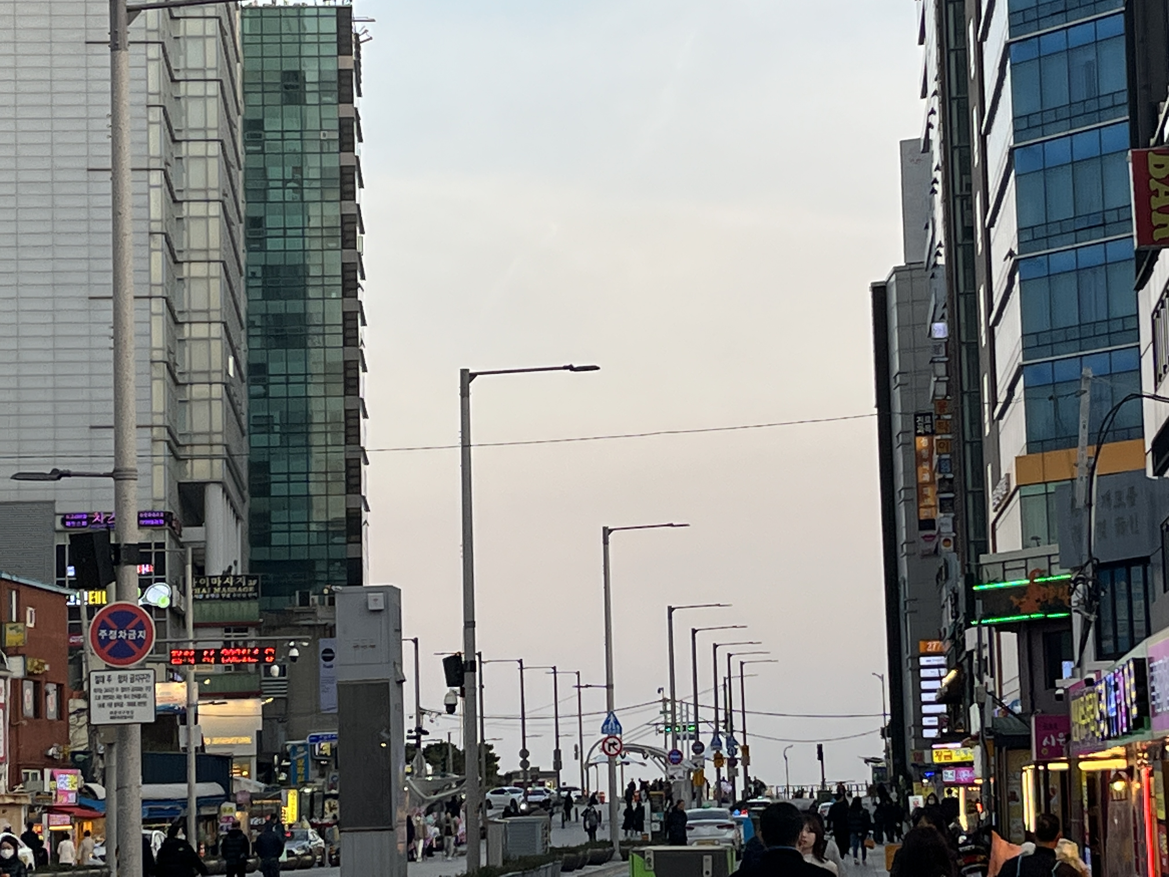 가장 좋았던 부분은 역시 식사 마치고 해운대역으로 다시 언덕을 걸어 내려가니 건너편에 탁 트인 하늘이 마치 장벽처럼