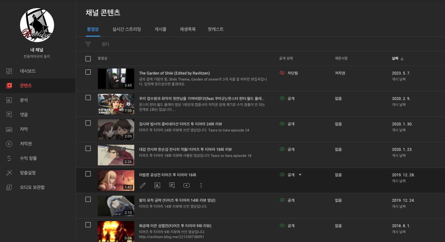 광고 수익 원하지도 않고 그저 공개만 하고 싶을 뿐인데 철저하더군. 저작권 위배하는 거 잘 아니까, 공개만