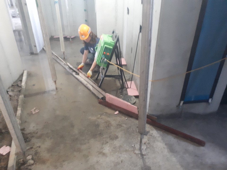 물을 퍼내고 밀대로 밀어버리는 전략을 쓰기로 했고 효과는 발군이었다. 오전 내내 해도 오후까지 절대