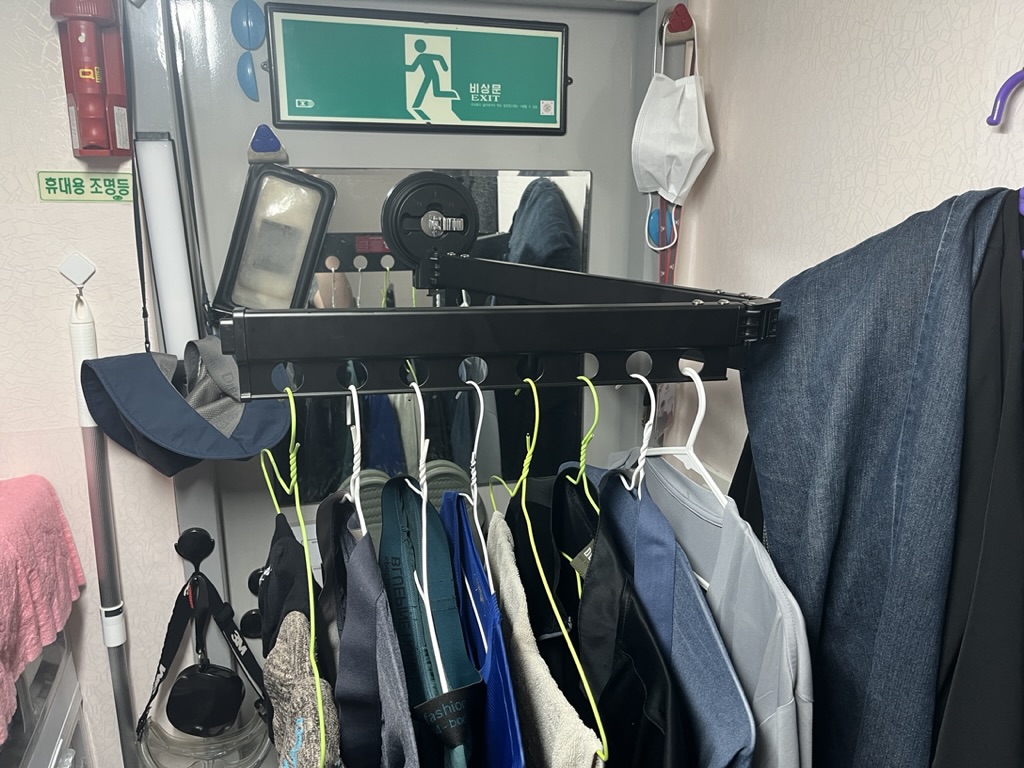 온갖 이유를 가져다 붙여야겠다. 고시원에는 다양한 세탁물 건조법이 있는데 건물 옥상 같은 공용 공간의 건조대에
