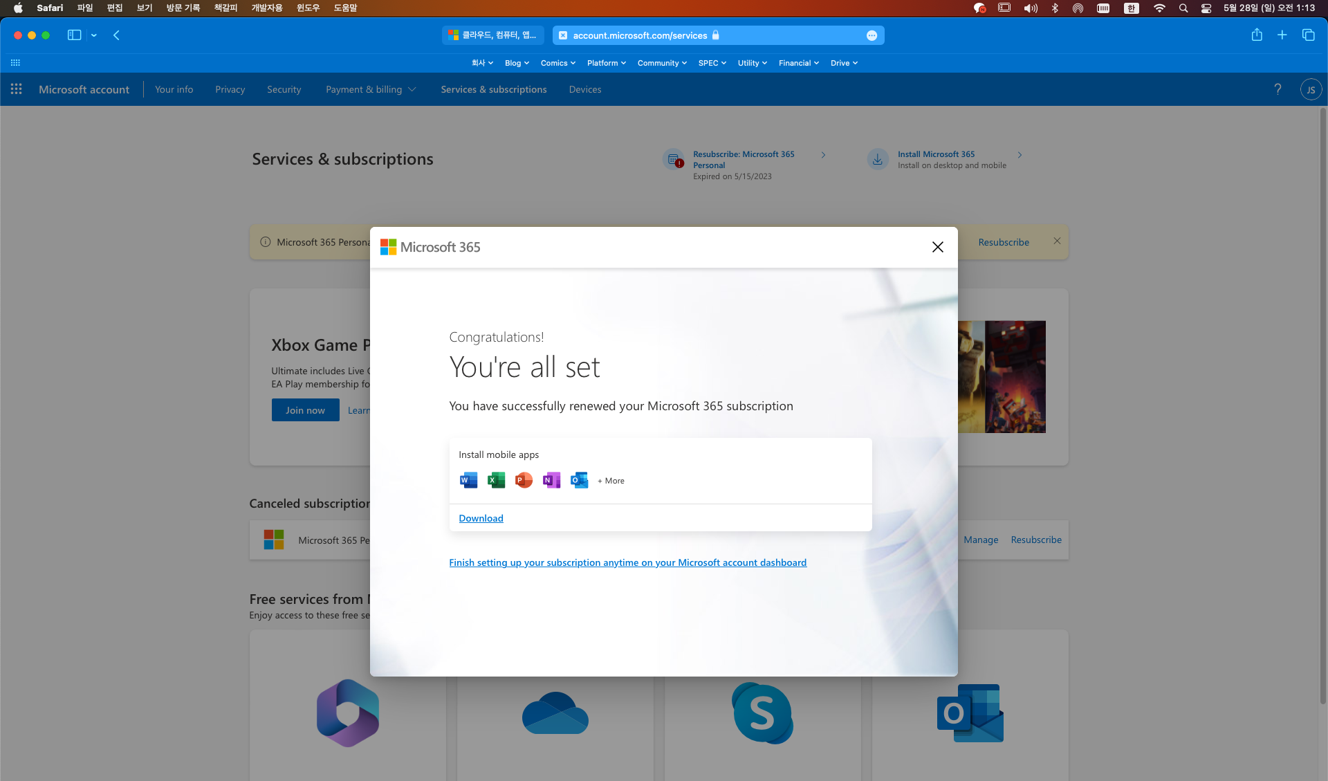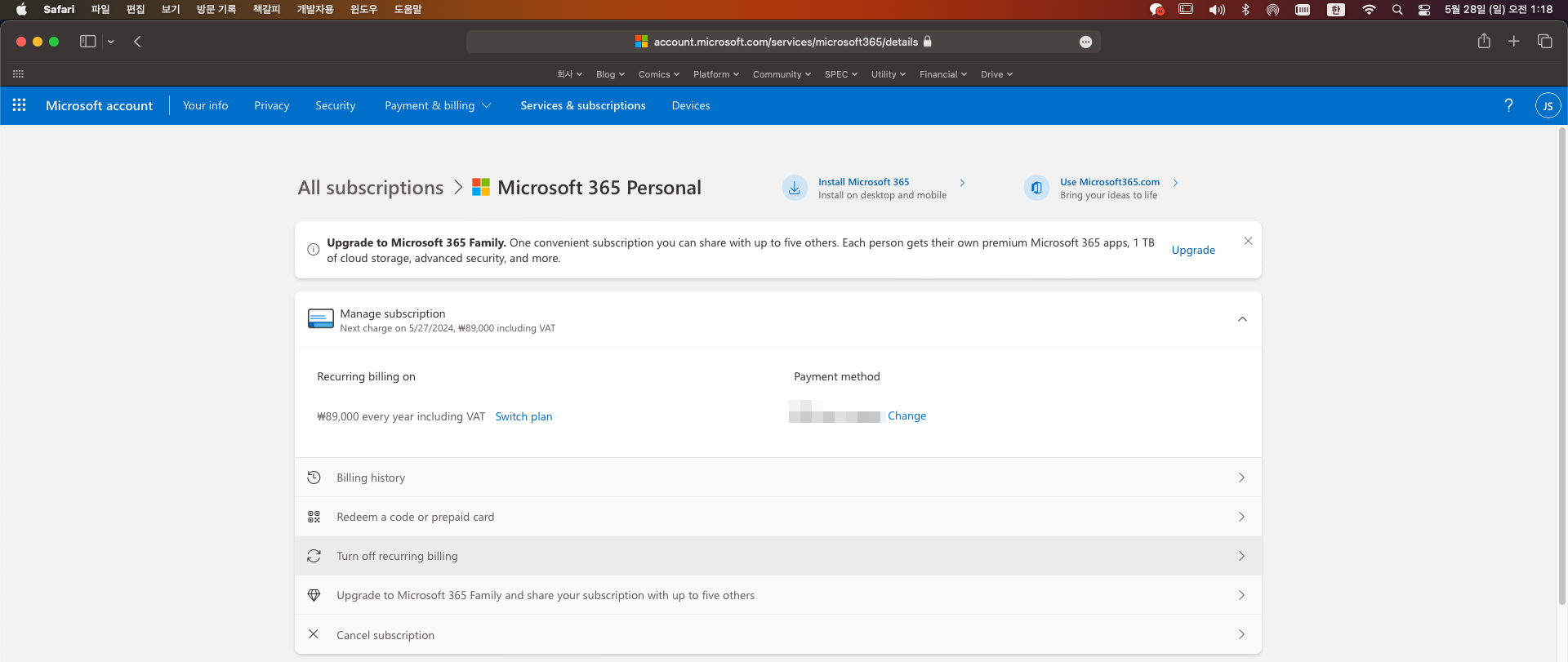 때문에 짜증이 나는 것도 있었어서 그냥 냅다 Microsoft Office 365 연간 결제를 끊어버렸다.