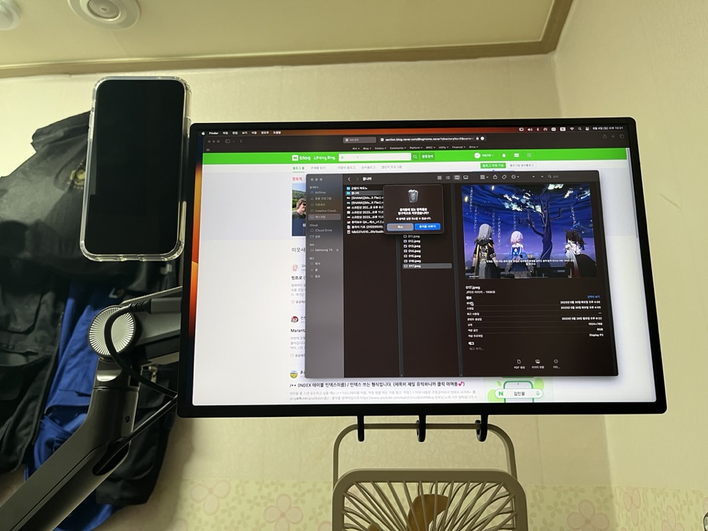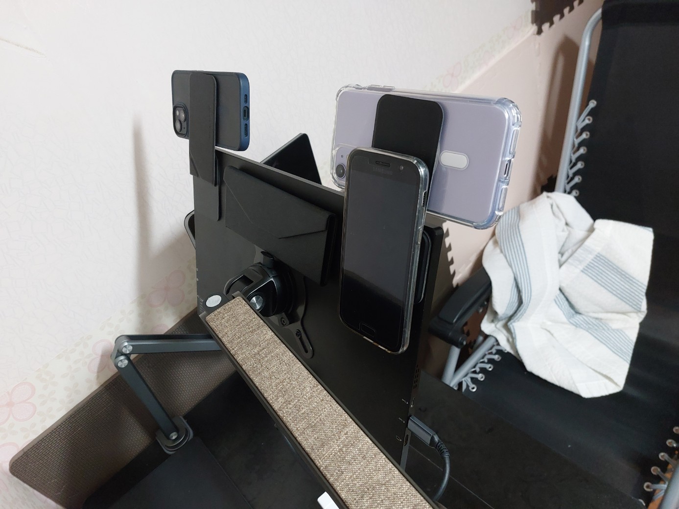 무게추로서의 기능은 확실히 수행할 수 있다는 거다. 현재 모니터에 스마트폰 4대랑 안경집, 선풍기까지 매달아두니까