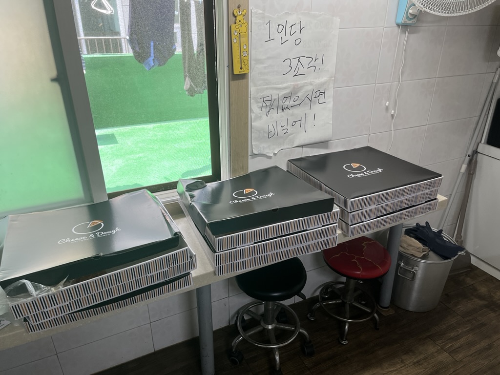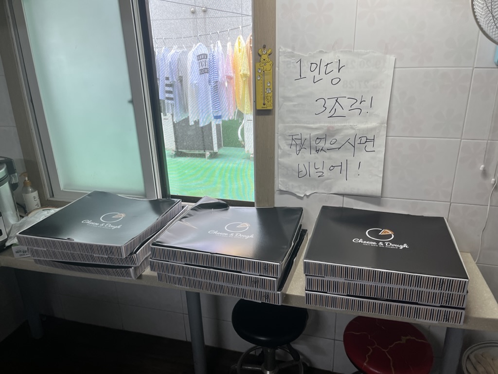 고시원 원장님이 방을 일일히 돌면서 못받아가신 입주민들에게 피자를 나눠주시는 걸 보았다.