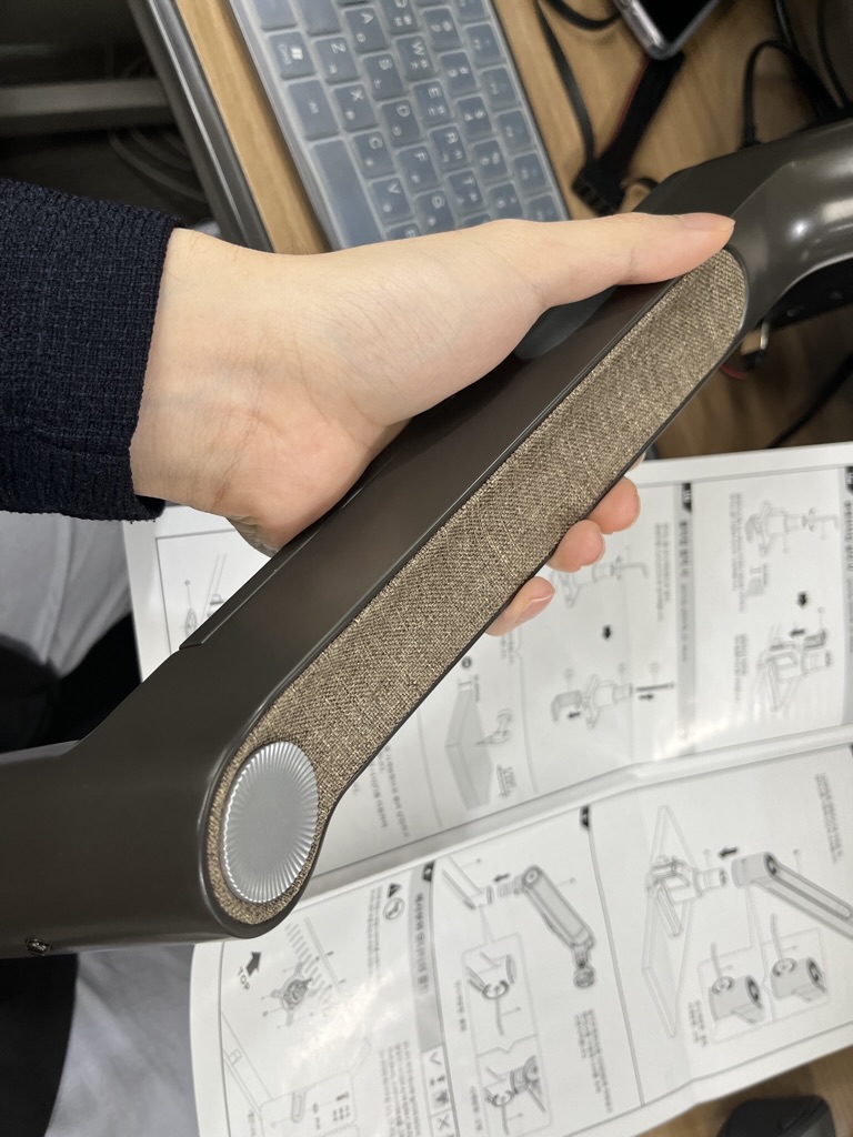 장력을 조절하는 부분에는 흰색 자석 덮개가 씌워져 있다. 어쨌든 자석이라는 부분이 마음을 끌었다. 이 모니터암을 사용한지
