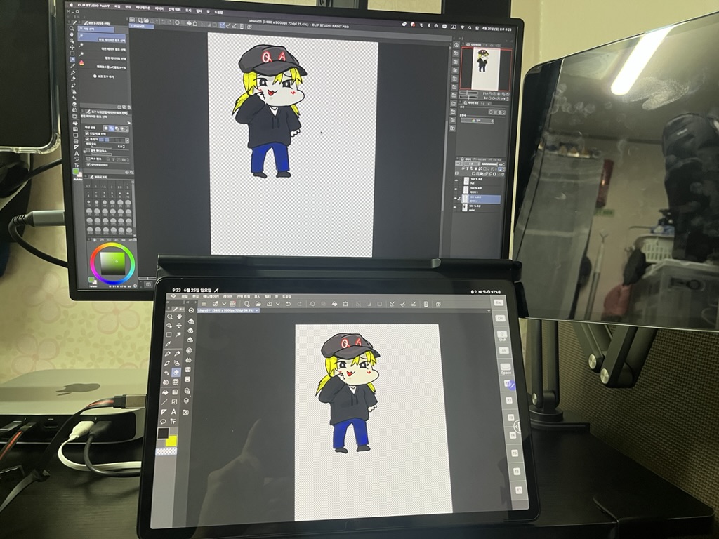 다만 아쉽게도 갤럭시탭의 입지가 조금 애매해졌다. 아이패드는 애시당초 니케 마그네틱 모니터 거치대로 띄운 상태로