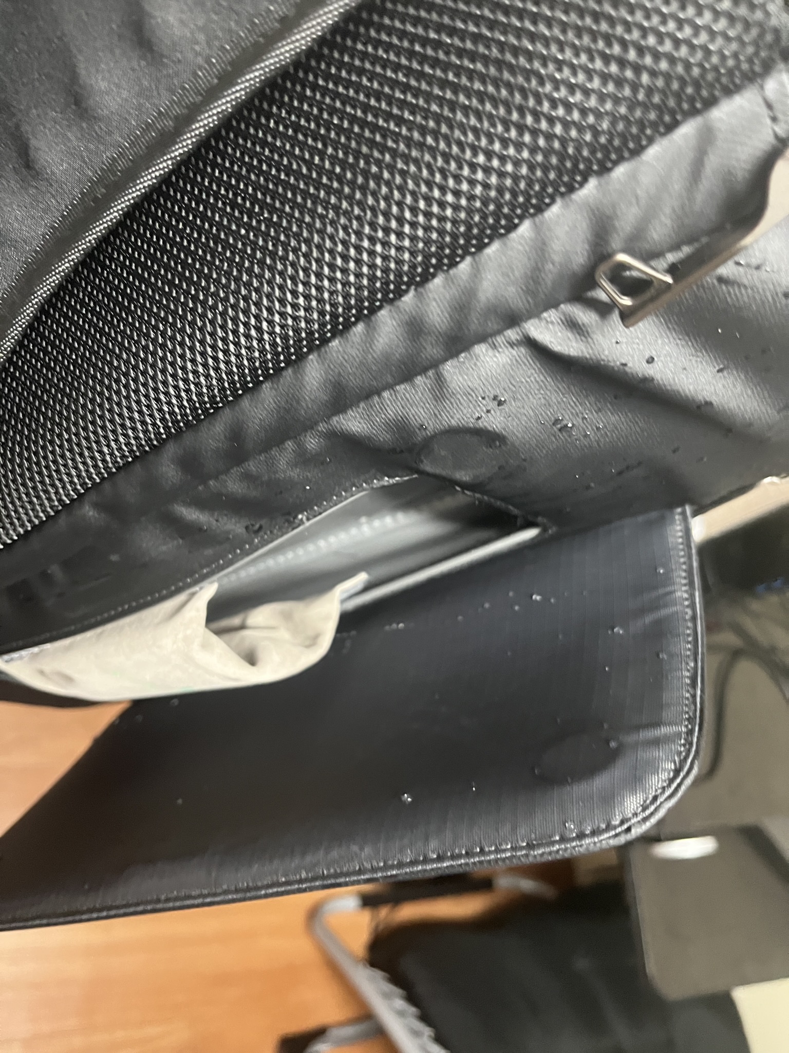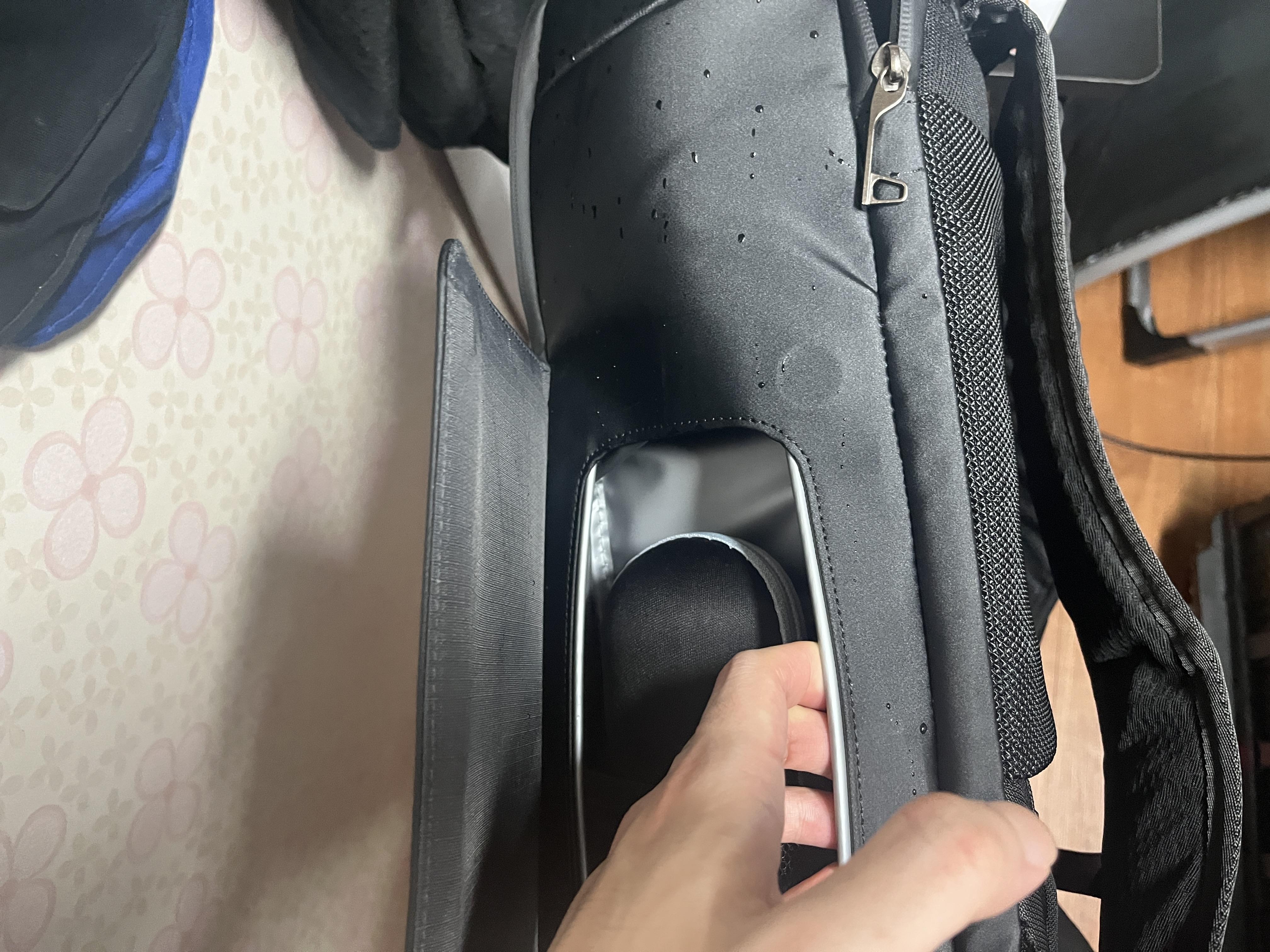 결함인가 싶어서 담당자에게 직접 문의해보니 설계상 빗물이 스며들어 사이드 포켓에 들어가리라는 것이 아예 염두를