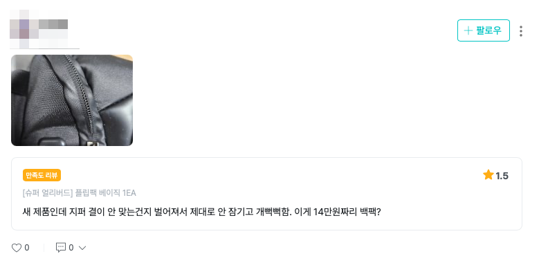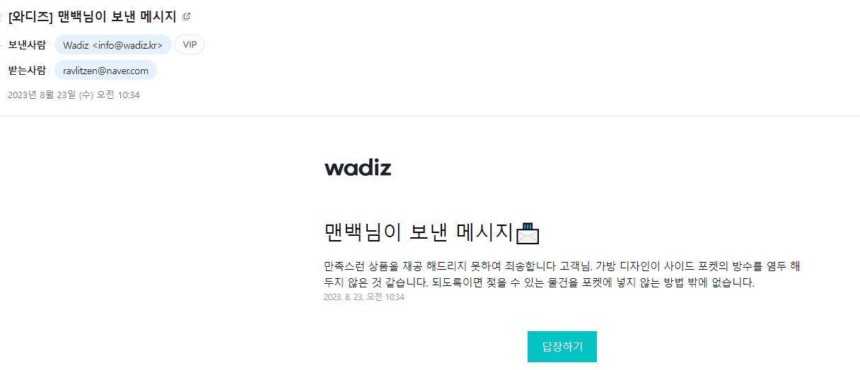 심히 빡쳐서 장문의 리뷰를 판매 페이지에 남겼다. 명백한 QA 실패라는 점을 지적해주고 말이다. 세상 어느 가방이 멋대로