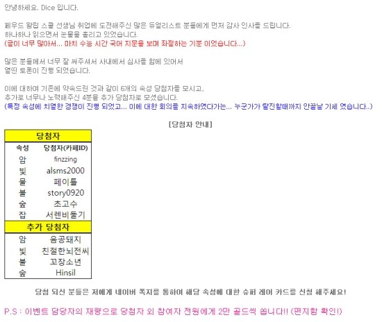 ~ 이벤트 당첨 페이지 내용 전문 ~