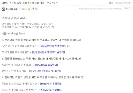 유저들에게 강의를 요청하는 이벤트가 있길래 마침 제가 빛 속성 몬스터 위주 덱이라면 내 나름